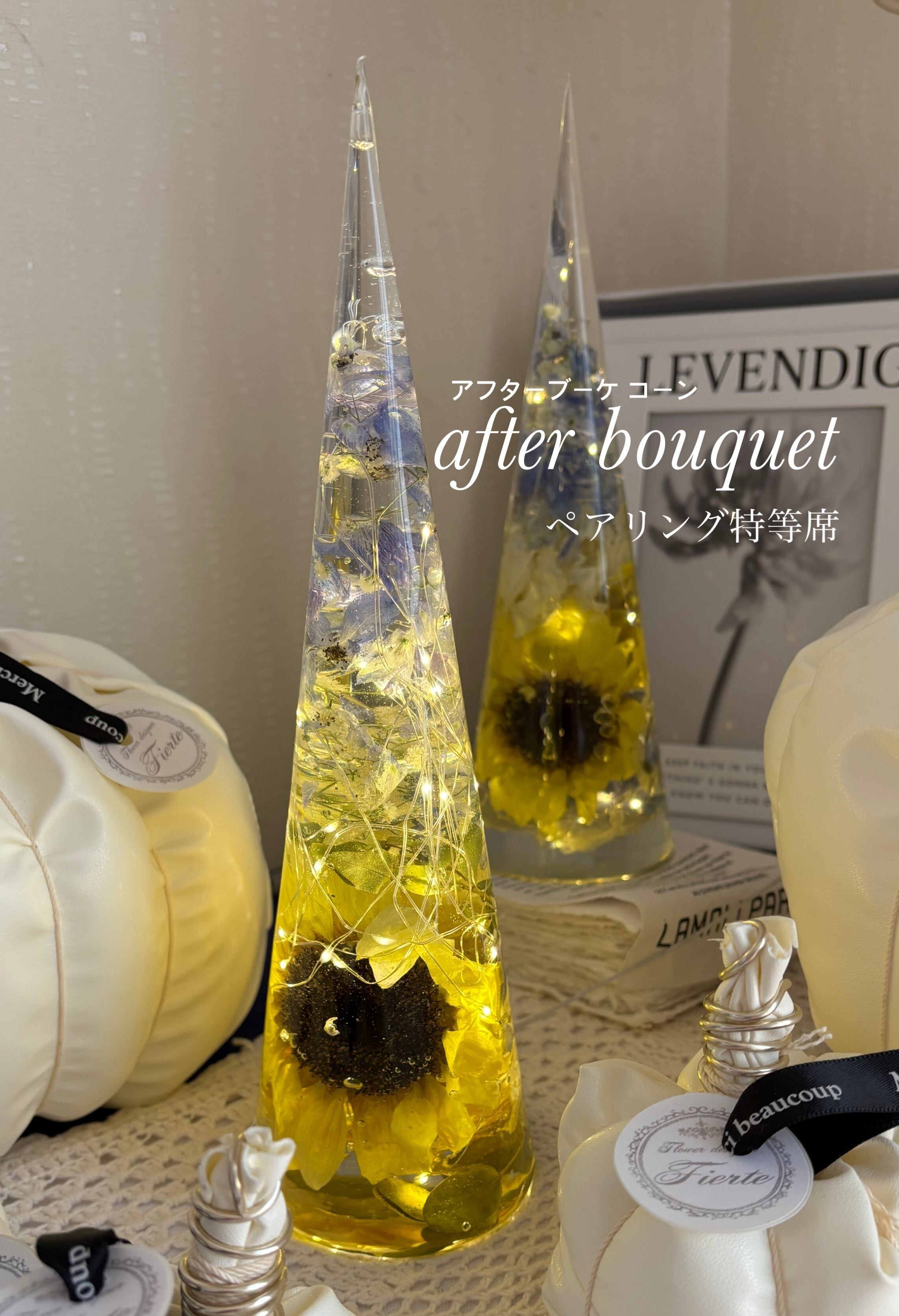お写真は実際使用したブーケを元に乾燥させたコーン型の中にぎゅっと詰め込みました。